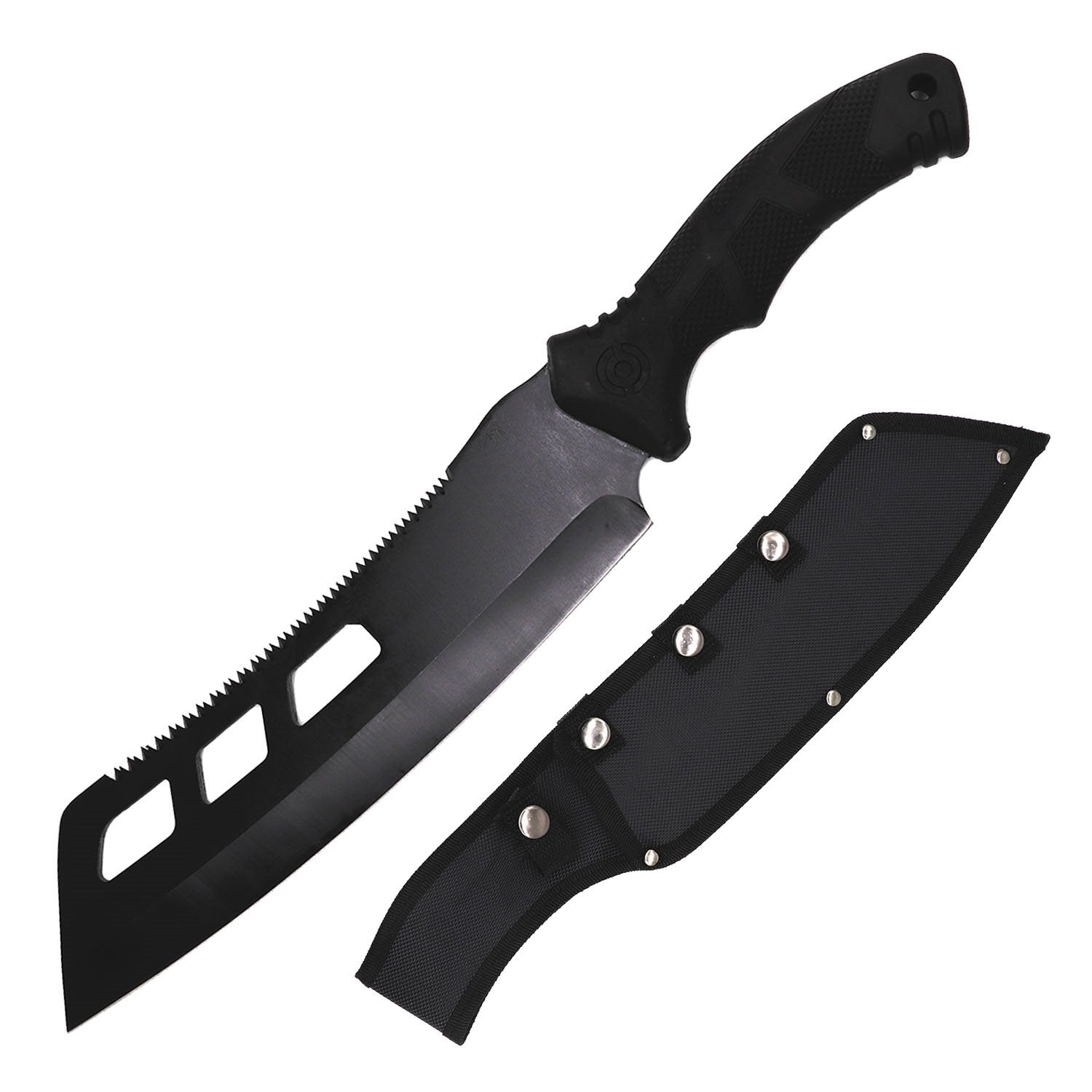 16" fixed blade outdoor hunting knife, black rubberized handle