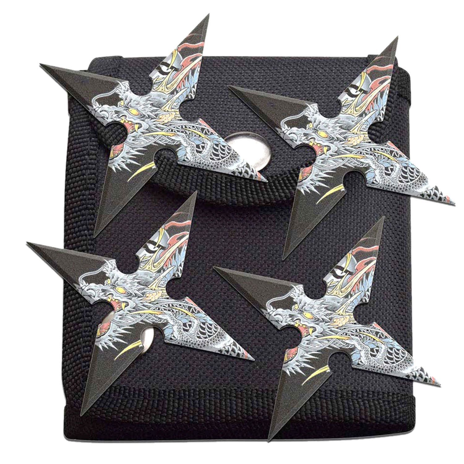 The incredible 4 PC Dragon Throwing Stars is made from heavy, high grade stainless steel. This ninja star is forged and sharpened to have greater mass...