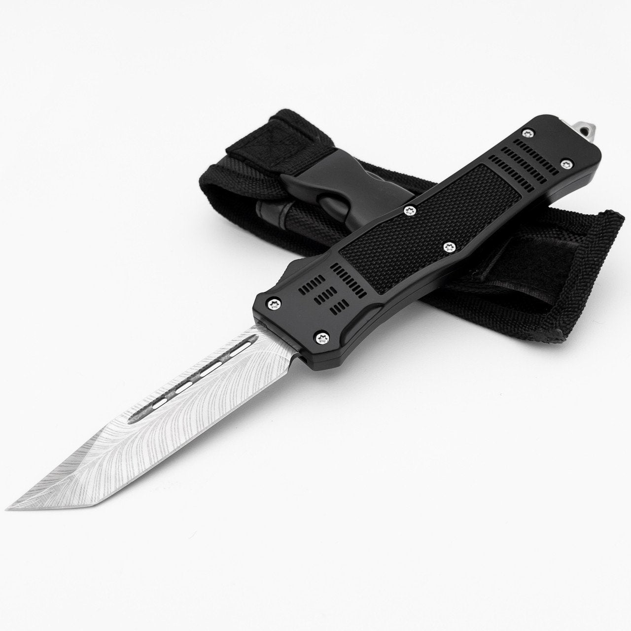 This Auto is built for hard use. Featuring 3.5-inch two tone black and satin finish 440C blade that is meticulously hand sharpened to a razor’s edge...