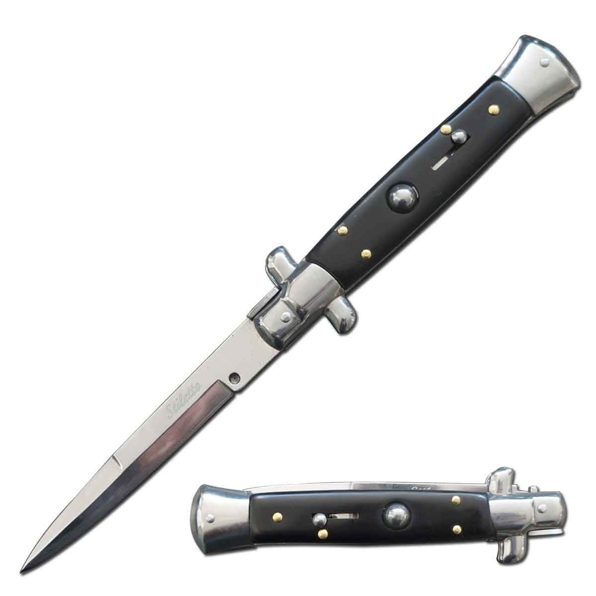• 9.75" italian milano stiletto black pearl handle automatic knife