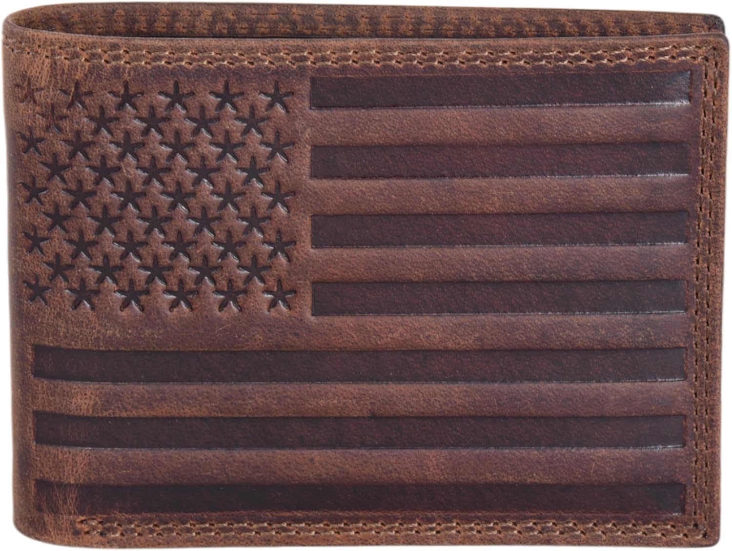 Leather Wallet for Men | Slim, Stylish, Genuine Leather Double Stitched RFID Blocking Bifold Stylish | With American Flag